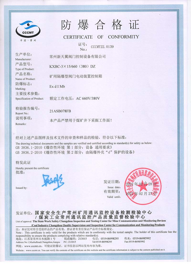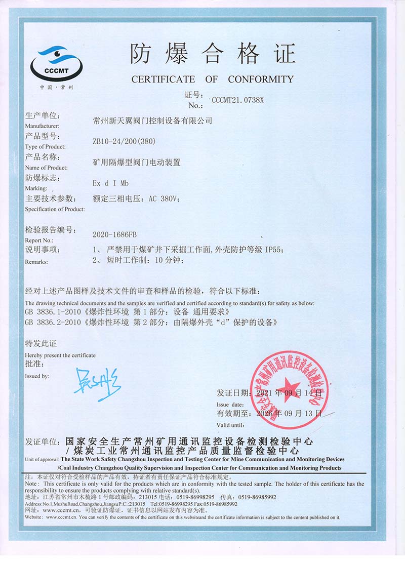 ZB20-24 200(660) 防爆合格證